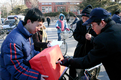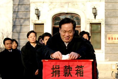 On the morning of January 4, volunteers of Tsinghua Zijing Student Dormitory set up a donation box in front of the No.10 dining room. Many students passing by gave cash to the victims of the disaster, which has claimed at least 150,000 lives.