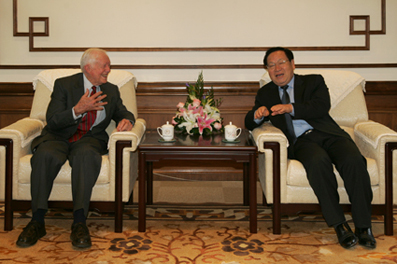 During their conversation, President Gu stated that the relationship between Tsinghua and the U.S.A. has a long history which includes institutional exchanges, collaboration with industries, and visits by government officials. President Gu then briefed Mr. Carter on Tsinghua’s latest development in education and overseas cooperation. President Gu and Mr. Carter also exchanged ideas on future collaboration between Tsinghua and The Carter Center in Atlanta. Tsinghua University Vice President Yuan Si also participated in the discussion.