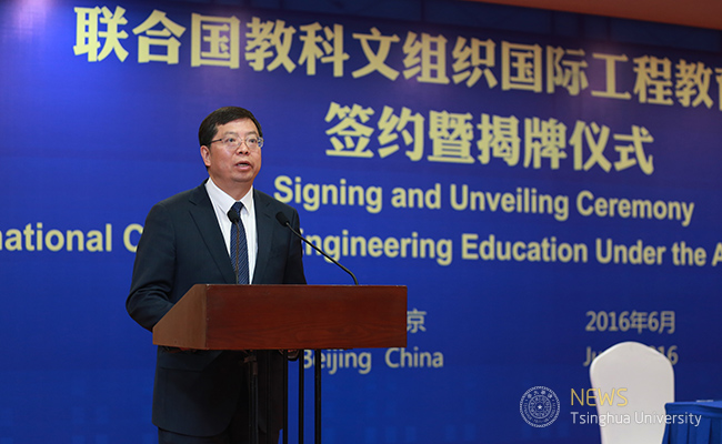 The Signing and Unveiling Ceremony of International Center for Engineering Education under the Auspices of UNESCO was held in Beijing on the morning of June 6, 2016. Irina Bokova, Director-General of United Nations Educational, Scientific, and Cultural Organization(UNESCO), Zhou Ji, director of the Chinese Academy of Engineering (CAE), Wu Qidi, the former vice-minister of the Ministry of Education (MOE), Qiu Yong, president of Tsinghua University, Yang Bin, vice-president of Tsinghua university and executive director of International Center for Engineering Education of UNESCO attended this ceremony. Zhao Xian’geng, a Party member of the CAE, presided over this event.