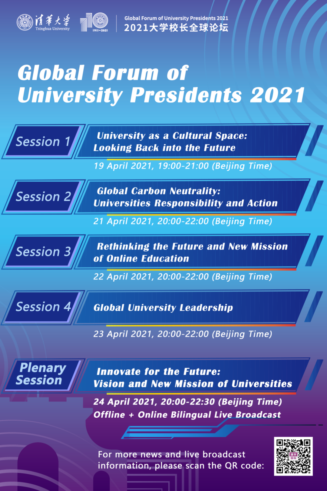 As Tsinghua University enters the final week of its 110th anniversary celebration on April 25, the University’s Global Forum of University Presidents 2021 (GFUP 2021) will convene online and offline from 19th to 24th of April 2021 to explore emerging aspirations for global higher education; and support greater levels of collaboration.