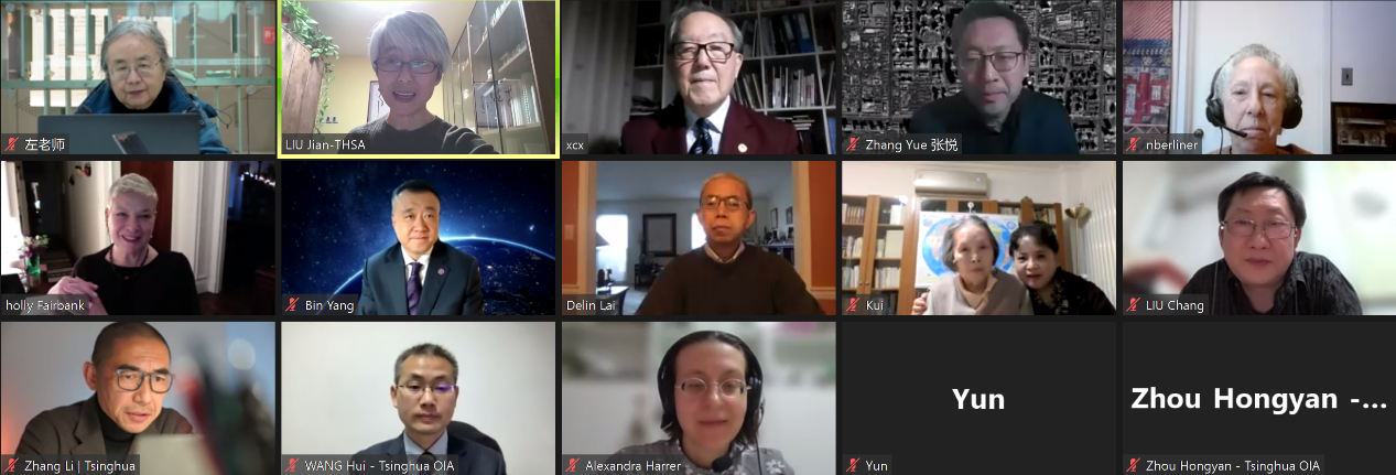 December 2, 2021, was a very special day for the Tsinghua University School of Architecture: Holly Fairbank, Adjunct Professor at the Teacher Education Departments of Hunter College (CUNY) in New York and daughter of Liang Sicheng’s old friends and China-connoisseurs John and Wilma Fairbank, donated precious historical material about Liang and his wife, Lin Huiyin, to the School of Architecture. Tsinghua University Vice-President and Provost Yang Bin presided over the virtual ZOOM meeting that was held in English and chaired by the School of Architecture Vice-Dean Liu Jian. The School’s Dean Zhang Li, the School’s Faculty Council Chairman Zhang Yue, and the Director of the School’s Museum of the Society for Research in Chinese Architecture Liu Chang participated in the ceremony; also present were the Professor Emeritus Zuo Chuan and other faculty members (like Alexandra Harrer) as well as Wang Hui from the International Affairs Office of Tsinghua University. The Liang family was represented by Liang’s daughter Liang Zaibing and his granddaughter Karol Yu (Yu Kui). Among the distinguished guests were the two Tsinghua School of Architecture alumni Xi Shuxiang (class of 1952) and Lai Delin (class of 1980), and the Wu Tung Senior Curator at the Boston Museum of Fine Arts Nancy Berliner.