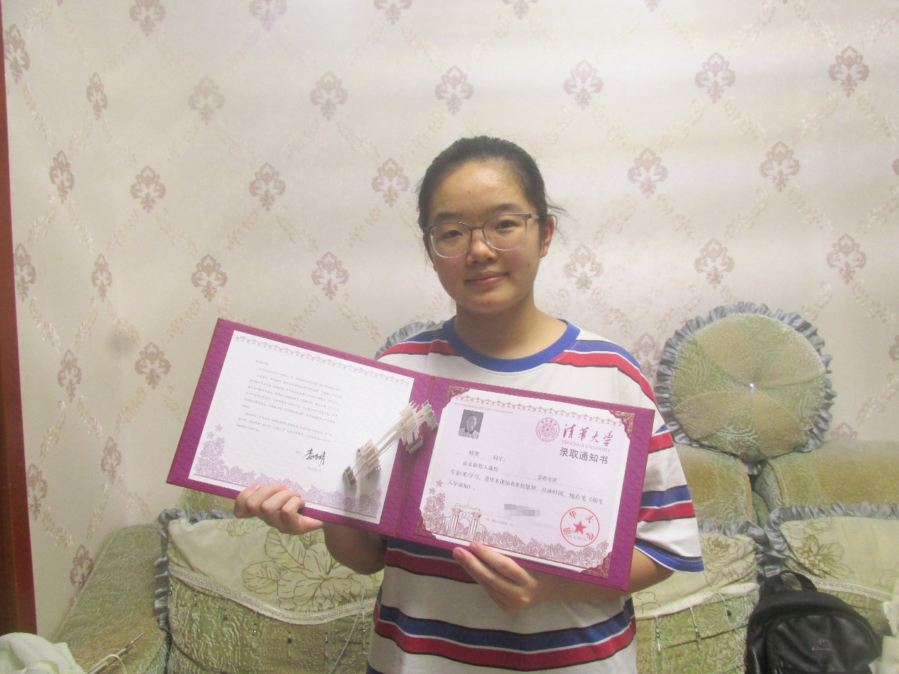 In the second year of middle school, Yang Yu's homeroom teacher gave her a Tsinghua badge. From that moment on, Yang Yu set her sights on attending Tsinghua University as her dream and worked tirelessly toward it.