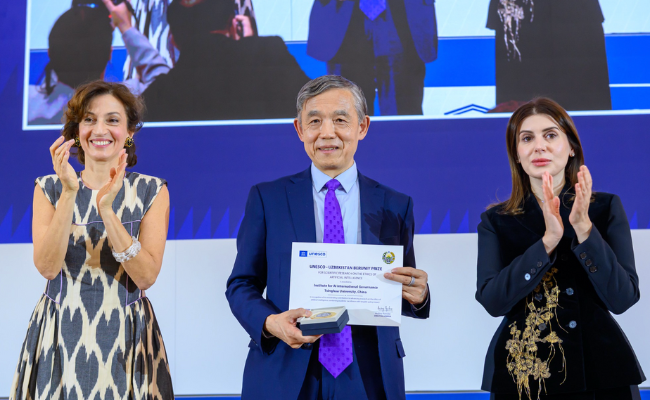 Audrey Azoulay, Director-General of UNESCO, presented the prize with Gayane Uemerova, Chairperson of the Uzbekistan Art and Culture and Development Foundation. Xue Lan, Dean of I-AIIG, along with Vice Deans Liang Zheng and Xiao Qian, attended the ceremony as invitees.