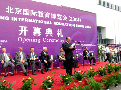 Beijing International Education Expo 2004 opened in the China International Exhibition Center on August 24. Tsinghua University participated in the exhibition. Vice Chairperson of Tsinghua University Council Hu Dongcheng attended the opening ceremony and made a speech on behalf of Chinese universities at the ceremony.