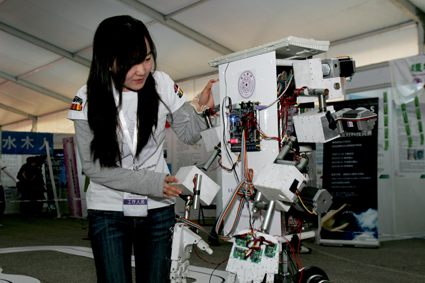 Tsinghua Vice President Kang Kejun spoke at the opening ceremony, noting that the university attached great importance to innovation. Works in honor of the Tsinghua centenary next year were also displayed at the exhibition. One of these was a robot capable of simulating human actions, such as holding a glass of water in the palm of its hand without spilling it. "This technology could be used for work under harsh conditions and for ordinary housekeeping," said Chang Zhang, Vice Chairperson of the Tsinghua students' science and technology association. Visitors could give feedback and vote for their favorite works.