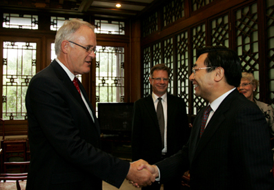 Professor Stuart N. McCutcheon, Vice Chancellor of the University of Auckland, visited Tsinghua on June 17. Tsinghua University Council Chairman Hu Heping had a discussion with Professor McCutcheon. Professor Liang Xidong, President of Qinghai University, also participated in the discussion. The three reviewed triangular cooperation among their universities and exchanged ideas on future collaboration.