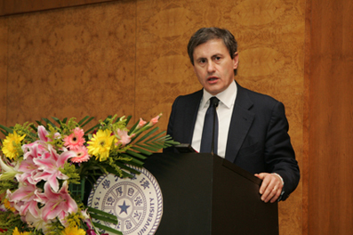 Mr. Gianni Alemanno, the Mayor of Rome, visited Tsinghua University on October 12 and delivered a speech in the Tsinghua Global Vision Lectures Series. Members of the delegation led by Mr. Alemanno also included Mr. Umberto Vattani, Chairman of the Italian Trade Commission and Mr. Livio De Santoli, Dean of the Faculty of Architecture at the University of Rome.