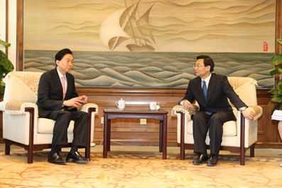 Former Prime Minister of Japan Yukio Hatoyama visited Tsinghua University on May 26. Tsinghua University Council Chairman Hu Heping had a discussion with Mr. Hatoyama, exchanging ideas on the further promotion of collaborations between Tsinghua and Japanese universities.