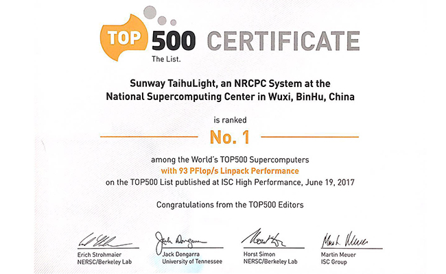 At 17:00 on June 19, the semiannual TOP500 Supercomputer list released at the ISC High Performance conference (ISC) in Frankfurt, Germany once again recognized China’s Sunway TaihuLight as the world’s fastest supercomputer, with 93 petaflops (quadrillions of calculations) per second on the LINPACK benchmark. This is the third time that the Sunway TaihuLight has topped the TOP500 list since 2016.