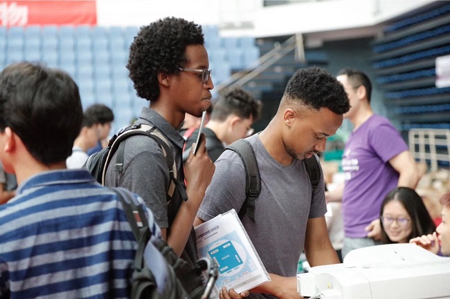 Early in the morning, the first bus full of excited students arrived at the Zijing Dormitories. There, they were greeted by their welcoming elder classmates, who guided these freshmen to their registration location of their schools while patiently answering everyone’s questions. The freshmen were then greeted by their schools’ mascots, who were there to take photos with them. On the main road in front of the Zijing Dormitories, the various booths were there to provide guidance to all the new students.