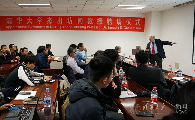 On the afternoon of December 11th, Professor Dr. Ignacio E. Grossmann of Carnegie Mellon University, was appointed as the Distinguished Visiting Professor of Tsinghua University. Vice President Zheng Li attended the ceremony and presented the letter of appointment to Professor Grossmann. After the ceremony, Professor Grossmann presented a theme report entitled “Evolution of Process Systems Engineering and Future Trends in Research”.