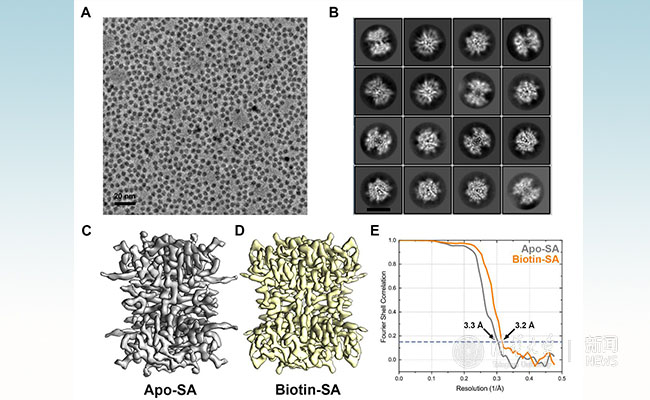Professor Hong-Wei Wang’s group at Tsinghua University, School of Life Sciences published a research article in Nature Communications on 3rd June, 2019, entitled "Single particle cryo-EM reconstruction of 52 kDa streptavidin at 3.2 Angstrom resolution". This work makes a new record of the smallest size of protein solved by single particle cryo-EM at near atomic resolution. At the same time, this work provides evidence for the critical influence of air-water interface for protein particle behavior in cryo-EM sample.