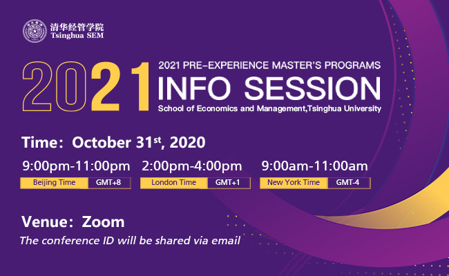 We sincerely invite you to attend the 2021 pre-experience master’s programs info session of Tsinghua SEM!