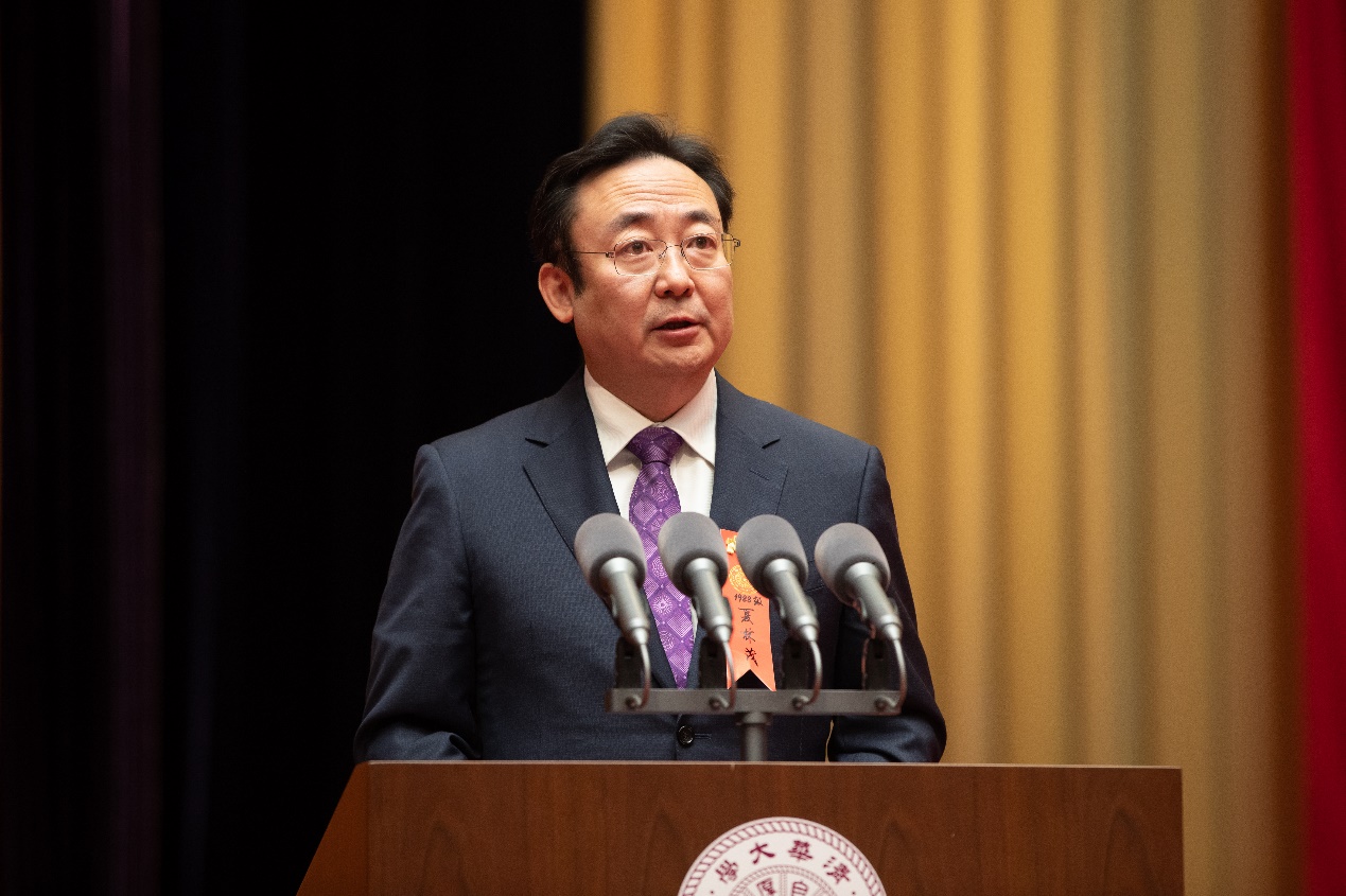 Qiu Yong, the President of Tsinghua University, delivered a speech at the ceremony. Qiu recalled that Tsinghua was born in a time fraught with deep civil unrest and international aggression. Initially named Tsing Hua Imperial College at its founding 110 years ago, the school was devoted to the “cultivation of all-round talents and enhancing of national strength”. In the same year, the progressive movement Xinhai Revolution (also known as the 1911 Revolution) broke out, sending China on the path of progress and promoting Tsinghua to embark on the struggle of saving the country and empowering the country with high sense of historical mission.