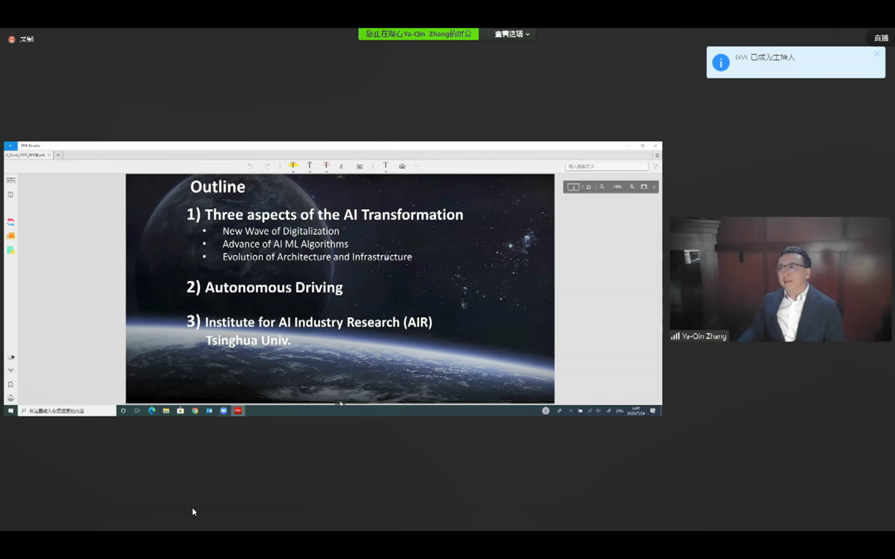 In addition, Dr. Zhang Ya-Qin introduced the management ethos and research direction of the Institute for AI Industry Research (AIR) of Tsinghua University. AIR aims to seize the fourth industrial revolution, and create an innovative research and development platform with key breakthrough points: autonomous driving, AI + Internet of Things, and brain-like intelligence. In the interactive session, when asked the question “whether infrastructure security upgrades can keep up with the development speed of AI”, Dr. Zhang Ya-Qin responded that many technologies, for instance, differential privacy protection based on data distortion, have emerged to improve the security of infrastructure such as data and algorithms. Nevertheless, while developing AI industry, scientists should always focus on ethical issues including privacy and data security, and conduct research and promote the development of the industry in a more responsible manner.