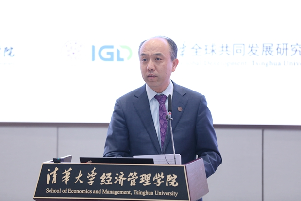 Bai Chongen, dean of Tsinghua University's School of Economics and Management (SEM), delivered a keynote speech interpreting the guiding principles of the 20th CPC National Conference and the Chinese path to modernization. He shared his insights into Chinese modernization by examining four key aspects: growth driven by innovation and efficiency improvement, people-centered development, green development, and peaceful progress.