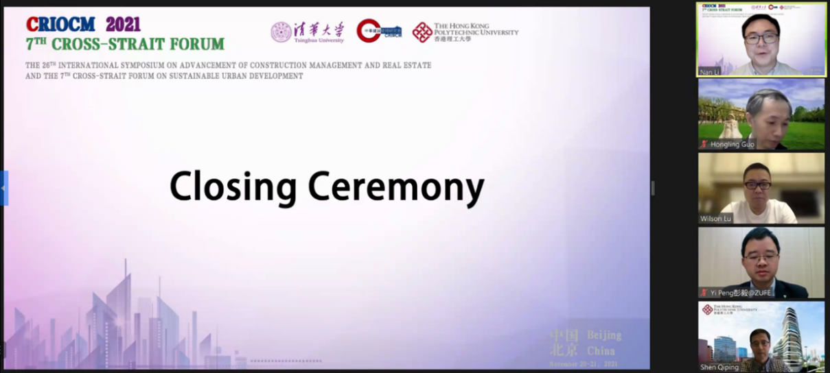 乐鱼(中国)网12月10日电 11月20日-21日,第二十六届建设管理与房地产发展国际学术研讨会(CRIOCM 2021)暨第七届海峡两岸可持续城市发展论坛在线成功举行。本次会议由乐鱼在线平台、中华建设管理研究会和香港理工大学联合主办,乐鱼在线平台土木水利学院、乐鱼在线平台未来城镇与基础设施研究院和香港理工大学可持续城市发展研究院联合承办。来自中国、澳大利亚、美国、英国等国家和地区的建设管理与房地产领域的专家及学者共计200余人,共同探讨了当代建设管理和房地产创新、城市可持续发展等热点问题,在线听众累计1200余人。