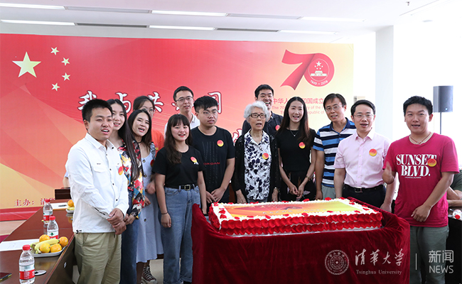 清华园老龄大学原副校长张树人也是共和国的同龄人,她参与策划老龄大学的快闪献礼国庆活动,为大家带来了活动中朗诵的一段诗,表达了退休教师对祖国的赤诚心声:“踏着新时代的节拍,新中国迎来70华诞。唱起我和我的祖国呀,眼含热泪心潮澎湃。水木清华为我们见证,青春无悔夕阳更美。生而得时、长而乘势、壮迎复兴、老逢盛世,我们赶上了新时代。感恩祖国、祝福祖国、祖国万岁──这是发自我们心底的爱!”