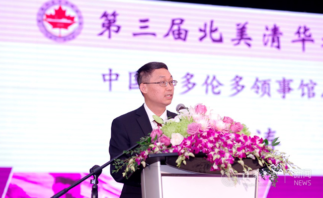 大会特邀嘉宾中国驻多伦多领事馆总领事韩涛致辞,他对各地校友们的到来表示欢迎,并简要介绍了南安省在教育、经济、创新等方面的情况,特别是当地清华校友和校友会在其中的重要贡献。