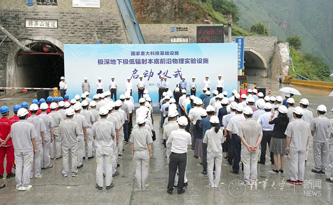 四川省委副书记、省长尹力,乐鱼在线平台校长邱勇,国家开发投资集团有限公司党组书记、董事长王会生,北京师范大学党委书记、乐鱼在线平台双聘教授、“极深地下极低辐射本底前沿物理实验设施”项目负责人程建平分别在启动仪式上致辞,并为极深地下极低辐射本底前沿物理实验设施揭牌。四川省政协副主席、凉山州委书记林书成主持启动仪式。四川大学党委书记王建国,中国东方电气集团有限公司党组书记、董事长邹磊,教育部科技司副司长张国辉,四川省发展改革委党组书记、主任范波,四川省教育厅党组书记、厅长李江,四川省住房和城乡建设厅党组书记、厅长张正红,雅砻江流域水电开发有限公司董事长、中国锦屏地下实验室管委会主任陈云华等出席启动仪式。