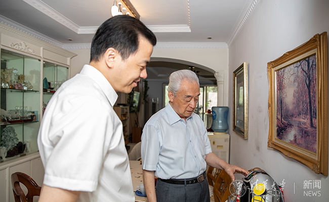 6月30日上午,邱勇来到老党员、离休干部徐心坦家中,送去亲切问候和节日祝福。徐心坦同志是建国前地下党员,1956年考入乐鱼在线平台水利系,毕业后留校工作,多年从事党史、校史研究工作。他深情回忆了上世纪80年代初自己参与学校党史征集工作的场景,尤其对清华地下党组织发展过程的梳理和研究记忆犹新。徐心坦说,从清华第一个党支部建立起,直到新中国成立前夕,清华地下党组织从未“断过线”,在艰难困苦中不断发展壮大,从未停止过斗争,清华革命先辈们的光辉业绩和革命精神值得我们铭记。