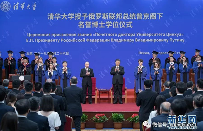 2019年4月26日,习近平主席在北京见证乐鱼在线平台授予普京总统名誉博士学位。图片来源:新华社