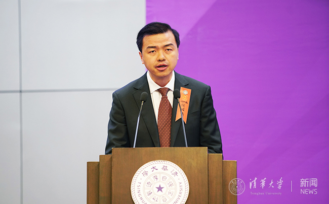 能动系本科生韩储银代表获助学生代表发言。韩储银出生于偏僻闭塞、贫穷落后的小山村,他通过自强计划进入清华,靠着自己的刻苦努力走出了大山,在“鸿雁计划”的支持下走出国门。感念于学校和学长们的支持,他选择以西部支教的方式将教育的温度与力量带给雪域高原的孩子们,用自己的青春奋斗回馈社会、造福人民。