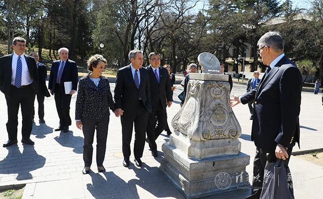 这是劳伦斯·巴科2018年1月上任哈佛校长后首次到访清华。这一天的清华园正值春分时节,玉兰绽放,山桃吐蕊,嫩芽新绿。劳伦斯·巴科及夫人一行在副校长杨斌的陪同下,饶有兴致地参观了水木清华、清华学堂等清华园标志性建筑和景点,在日晷前驻足,了解清华校风,感悟清华百年风物,对清华怡人的校园环境连连称赞。