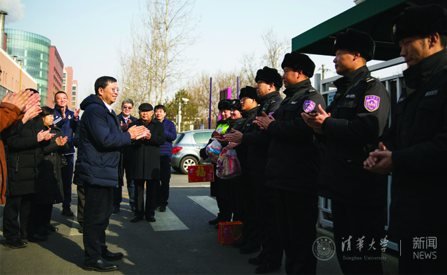 2月4日,农历除夕上午,校长邱勇、副校长吉俊民一行来到校医院、近春园宾馆、紫荆园餐厅、紫荆公寓总服务台、修缮中心环卫中心、东三门、李兆基大楼的网络研究院和信息化技术中心、街道办运行指挥中心、照澜院超市等处看望慰问坚守岗位的干部职工,对他们的辛勤工作表示感谢,并向他们致以新春的祝福。