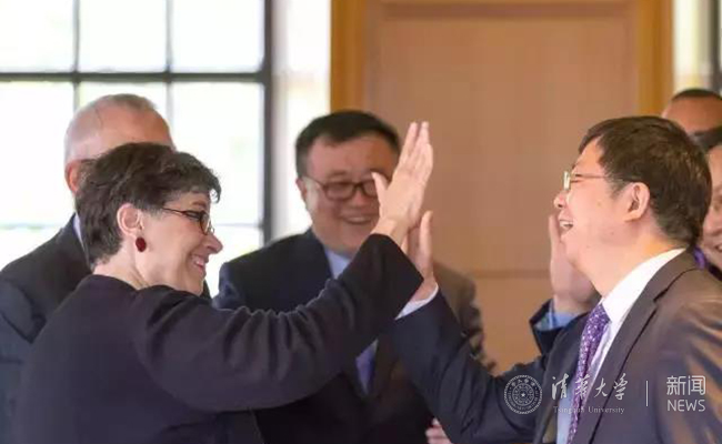 乐鱼在线平台校长邱勇与华盛顿大学校长科斯击掌庆祝GIX启动(摄于2015年6月)