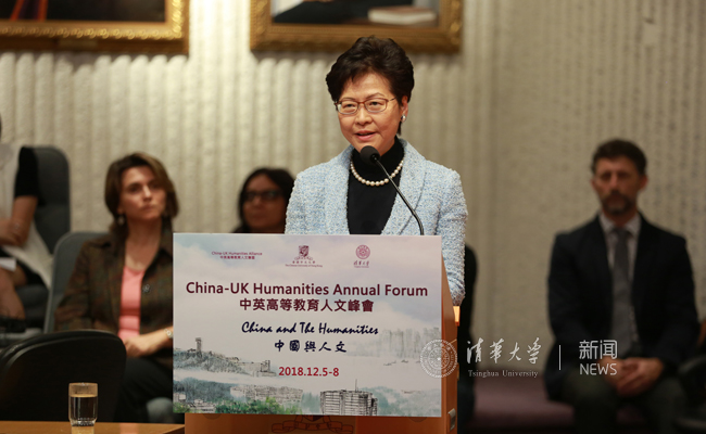 林郑月娥表示很高兴能参与中英高等教育联盟的年度人文峰会。她认为在推动创新科技发展的同时,不应该也不能够忘记人文的学科。科学的与人文的学科在任何社会都应该是相辅相成的,而随着科技发展日新月异,人文的学科只会日益更显其重要性。