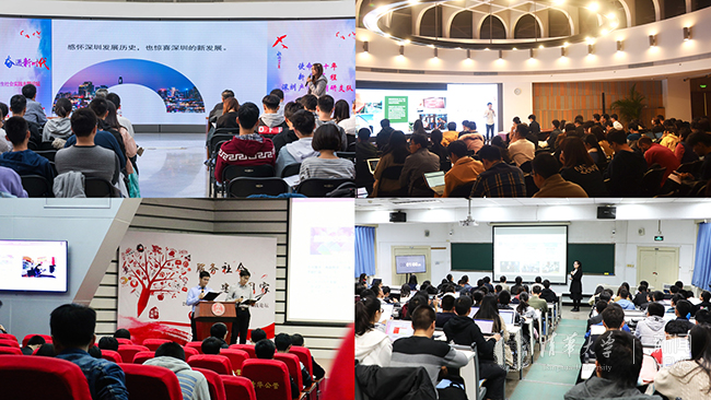 秋季学期,围绕五个重点方向,一系列高质量的社会实践总结活动陆续开展,在校园里营造了社会实践浸润氛围。全校共举办了30场社会实践年会各院系分会;以“壮阔四十年,奋进新时代”“行海外,观世界”“服务社会,建设国家”为主题举办了3场社会实践论坛;举办了“长期型、学术性、调研类”优秀支队答辩会、“专业认知,行业调研”优秀支队答辩会、金奖个人答辩会等4场专项总结活动,与论坛互为补充;在主楼前厅、三教平台、六教一层、逸夫图书馆前广场、综合服务楼前广场、学堂路主干道等校内多处同步开展了2场社会实践联展和5场主题展;建立“社会实践百人宣讲团”,组织100名社会实践骨干进入党团支部和党课学习小组,以生动的社会实践成果为载体,开展习近平新时代中国特色社会主义思想宣讲。