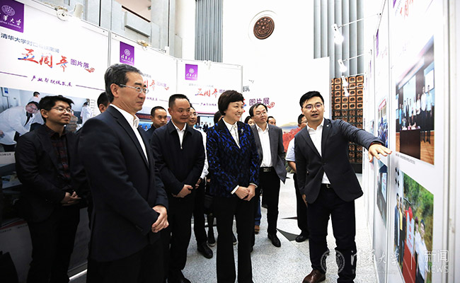 陈旭认真观看清华对口帮扶南涧五周年工作图片展 殷昊 摄