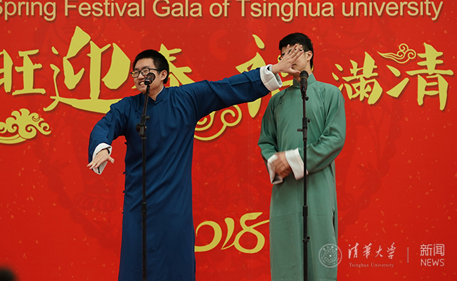 精彩的除夕晚会节目将晚会推向高潮。听涛园餐厅师傅马江献唱一曲《长江之歌》,并以亲手撰写的书法作品向同学们献上新春祝福。国际学生胡凤兰(Vika,俄罗斯籍,新闻学院2016级硕士生),法华德(Fahad,巴基斯坦籍,汽车系2016级博生生),恩迪(Sanjena,印度籍,环境学院2016级硕士生),南唐(Nathan,刚果(金)籍,经管学院2017级硕士生)在“欢度佳节”节目中表演了不同国家风格的舞蹈,用热情洋溢的舞姿传递了青春朝气。公管学院2017级硕士生林子秋、电子系2015级本科生王博宇等同学一起合唱《欢乐中国年》,欢快的歌声洋溢着快乐与祝福。学生艺术团曲艺队的人文学院2017级本科生刘子正、计算机系2017级本科生庆语其献上了新春贺岁相声《打灯谜》,现场妙语连连,带来了新春的欢声笑语。