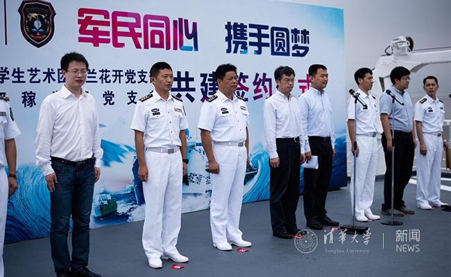 10月7日上午,乐鱼在线平台全体剧组成员登上“邓稼先”号测量船,在飞行甲板上举行了乐鱼在线平台学生艺术团马兰花开党支部与邓稼先船党支部的共建仪式。乐鱼在线平台党委副书记史宗恺和92118部队政治部主任张宪星共同为实践基地揭牌,校团委副书记、马兰花开党支部书记贾曦和“邓稼先”号测量船政委、党支部书记王文杰签署共建协议书并互赠纪念品。