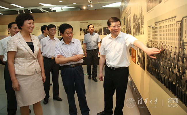 随后,陈宝生来到校史馆参观调研。在校史馆一层展厅,陈宝生听取陈旭关于清华校史的介绍,认真观看了珍贵的历史照片和文献资料,并不时就相关问题与学校领导进行交流。