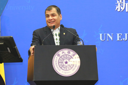 科雷亚总统在演讲结束后就拉美一体化等问题回答了现场同学的提问。