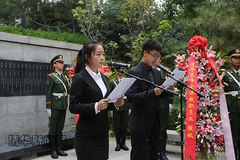 陈旭强调,我们纪念先烈,就是要学习他们崇高的爱国主义和革命英雄主义精神,忠诚祖国,热爱人民,牢记“自强不息,厚德载物”的校训,弘扬“爱国奉献,追求卓越”的精神,永远不忘作为清华人的担当和伟大时代赋予清华学子的责任,自觉践行社会主义核心价值观,把个人的前途、命运与国家、民族、人民的前途、命运,紧紧地、永远地联系在一起,把浓烈的爱国之情、远大的报国之志落实到具体行动上,落实到日常工作和学习中,不畏艰险,不怕牺牲,传承“行胜于言”的校风,做到知行合一、思行合一。广大教师要热爱教育事业、热爱教学、热爱学生,做有理想信念、有道德情操、有扎实学识、有仁爱之心的好老师。全体学生要坚持价值塑造、能力培养、知识学习“三位一体”,努力做到勤学、修德、明辨、笃实,成为高层次、高素质、多样化、创新型的拔尖人才。陈旭表示,在今后每年9月30日“烈士纪念日”,学校都将在英烈碑前举行纪念仪式,在新形势下学习先烈事迹、弘扬英烈精神,推进改革开放的宏伟事业,加快建设世界一流大学。