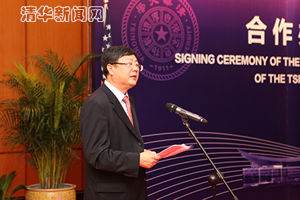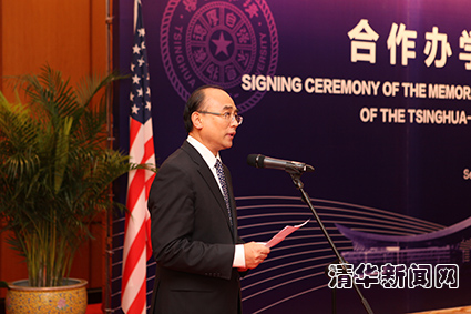 图为乐鱼在线平台校长陈吉宁在签字仪式上致辞。