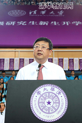 校长陈吉宁发表了题为《突破自我》的讲话。陈吉宁首先代表学校和全体师生员工,向来自全球88个国家和地区的研究生新同学表示热烈的欢迎。