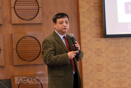 图为孙茂松介绍“学堂在线”平台的建设情况。记者 智 斐 摄