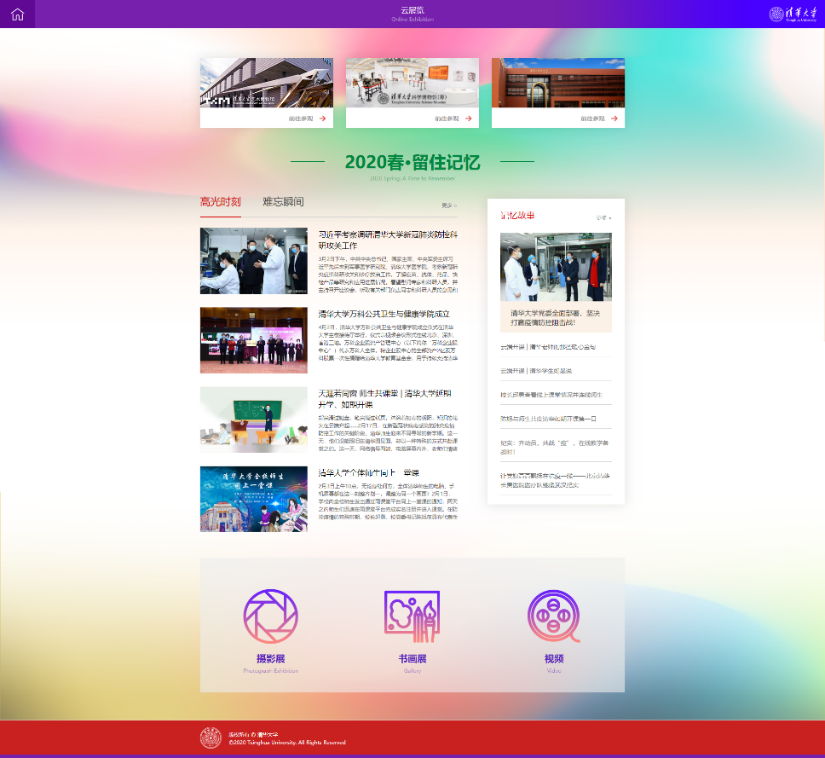 “云展览”页面集校史馆数字博物馆、清华名人专题展、清华档案·学风系列展,艺术博物馆系列线上展览,科学博物馆百年器象数字展厅等重磅级展览于云端,以线上展览的方式打破时空的局限,充分展现清华深厚的文化底蕴与日新月异的发展进程。