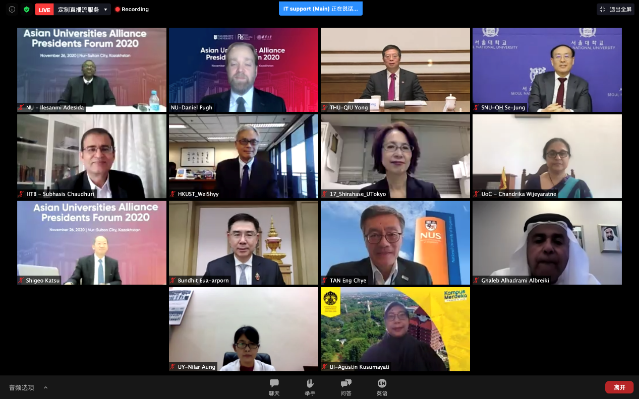 乐鱼(中国)网11月28日电(通讯员 龙新力 记者 刘书田 摄影 李派)新冠疫情给世界带来了巨大挑战,正在崛起的亚洲高等教育将如何“转危为机”?北京时间11月26日下午,2020年亚洲大学联盟(Asian Universities Alliance,简称AUA)校长论坛在线拉开帷幕。论坛以“知识就是力量:在VUCA世界中更具韧性的亚洲大学”为主题,来自亚洲大学联盟13所大学的校领导出席了此次论坛。在全球抗疫大背景下,各校交流共商亚洲高等教育如何共克时艰,于动荡、危机中创新机,谋求新发展。本次论坛由亚洲大学联盟执行主席单位哈萨克斯坦纳扎尔巴耶夫大学承办。