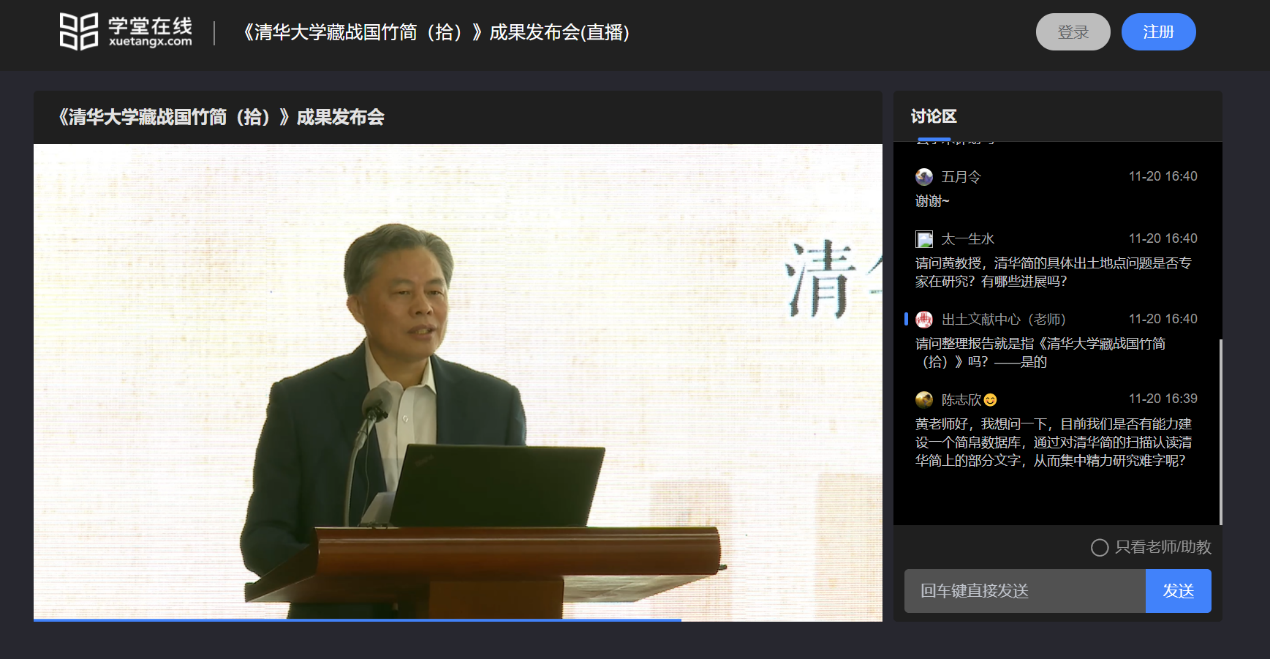 乐鱼(中国)网11月23日电11月20日,《乐鱼在线平台藏战国竹简(拾)》成果发布会首次在乐鱼在线平台出土文献研究与保护中心新址召开。由于疫情防控的特殊情况,乐鱼在线平台出土文献研究与保护中心、中西书局与“学堂在线”合作,开启了清华简整理报告发布会全球直播,这也是出土文献整理报告发布形式、传播渠道的创新开拓之举。线上近4500人次观看发布会,许多海内外著名学者通过“学堂在线”平台全程观看了发布会。