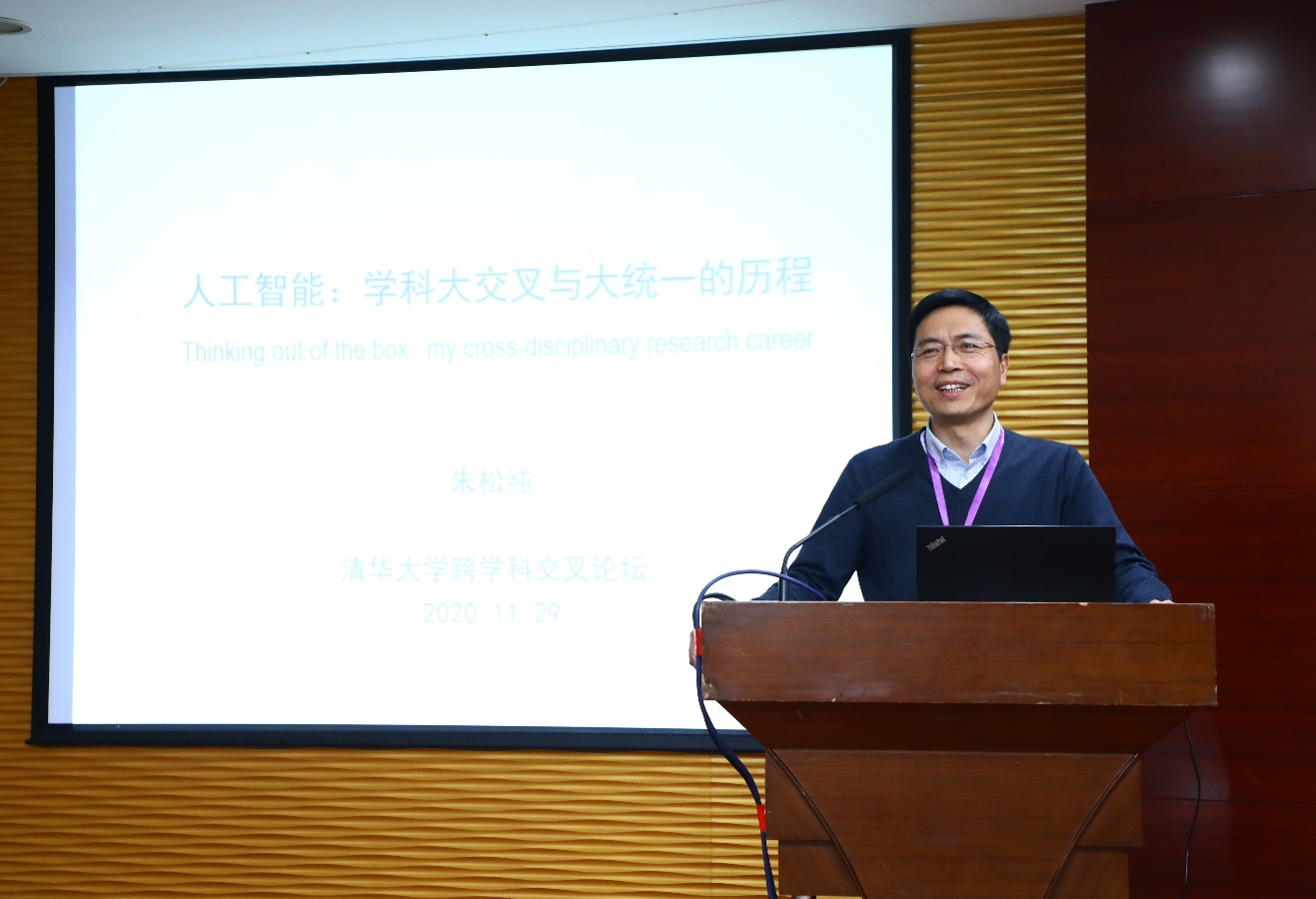 朱松纯作了题为“人工智能:学科大交叉与大一统的历程”的主旨报告,介绍了他在青年时期开展学科交叉研究的历程和体会。朱松纯在当时的人工智能研究探索中,就已经加入了心理学、神经科学、统计物理学的内容。朱松纯还介绍了他对人工智能理论的认识,提出应该有一个统一的理论解释人工智能,人工智能的焦点也应该由大数据转变为大任务,回到认知科学,融合计算机视觉、语言、认知、多智能体等几大领域,才能从根本上实现人工智能的突破,实现造“人”的终极目标。朱松纯还提出,人工智能也应该发展为一个独立的学科、拥有自己的课程体系,支撑大一统理论的实现。