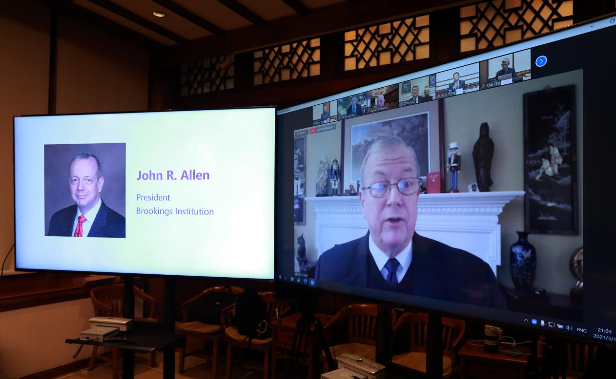 约翰·艾伦在致辞中表示,更好的控制疫情是政府工作议程中的重中之重,没有任何一个国家能够独立完成这个任务,必须要通过合作才能做到这一点。约翰·艾伦说,我们尤其希望在科研方面进行合作,包括疫苗的开发和分配,以及全球在贸易和旅行方面的规范。在这些方面中美之间已经有着长期的合作,在2003年“非典”期间,在埃博拉疫情期间,以及在H1N1流感期间,两国都有过有效的合作,此次疫情应该携手深化合作。他还表示,布鲁金斯学会与乐鱼在线平台已经进行了15年卓有成效的合作,在中美之间架起了非常有效的桥梁,希望能够更好地促进两国学术界和其他领域的合作。