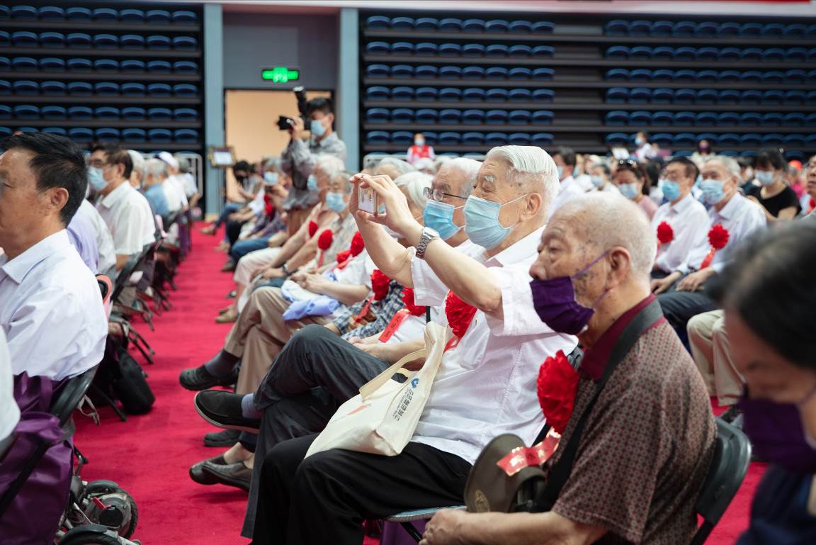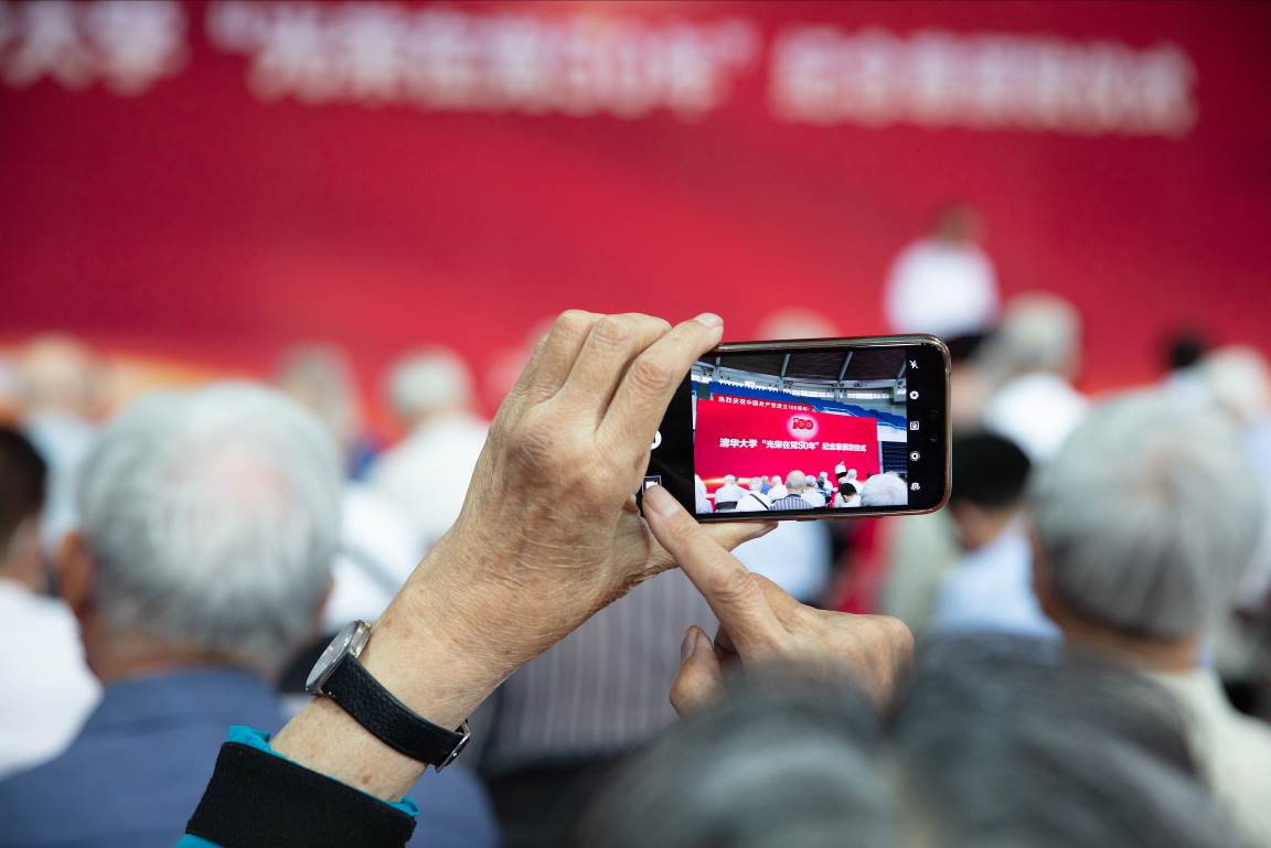 现场老党员,平均年龄81岁。年龄最大的是我国著名建筑学家、城乡规划学家和教育家,来自建筑学院的吴良镛先生,他已满99周岁。吴良镛先生在1960年入党志愿书中写道:“我感到投身到这伟大的共产主义事业中是最大的幸福,我愿意为这人类最伟大的理想贡献出我的全部力量,不惜在必要时付出我的生命!”吴先生用实际行动兑现了当初的诺言。吴先生和清华老党员是全校师生员工的楷模,是清华永远的骄傲!