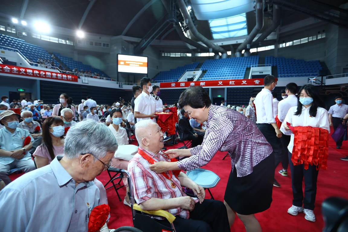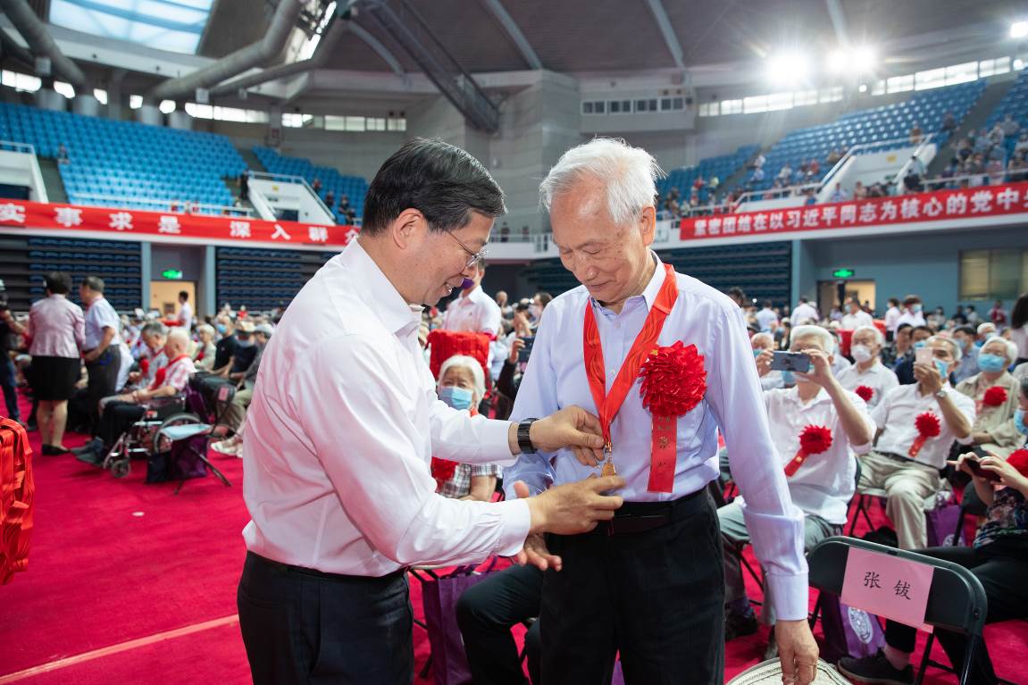 各单位党委书记、学校党委职能部门负责人、纪念章设计团队师生、各单位工作人员、学生代表、部分老同志亲属等参加仪式。