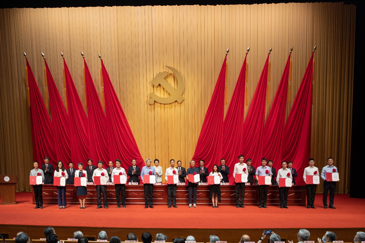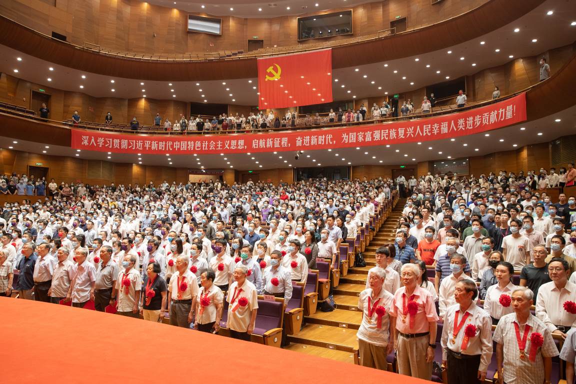 在大会现场,有一对党龄均已60年的老党员伉俪,他们是计算机系的黄汉文和电子系的丁晓青。两位老师抚摸着“光荣在党50年”纪念章,饱含热情地说:“没有共产党就没有我们个人的成长,我们还要继续发挥余热,践行入党初心!”