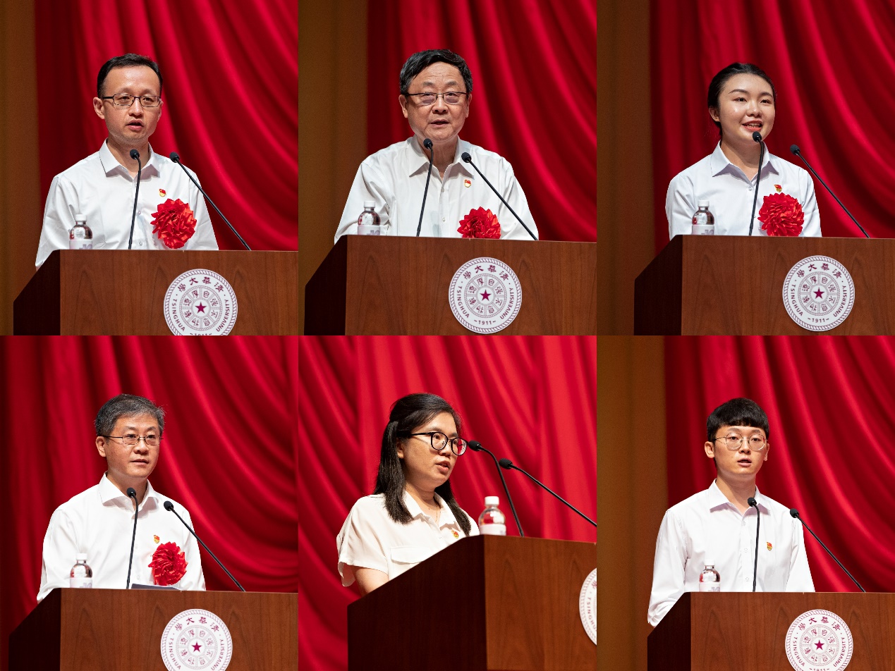 陈旭表示,过去一年,全校有3700多名同志光荣加入了中国共产党,为党组织增添了新生力量。新党员要自觉以“旗帜”“标杆”的标准要求自己,努力在政治上思想上行动上走在前列、做出表率,用一生向党和人民交出一份优异的答卷。广大教职工党员要提高政治站位,坚定为党育新人、为国育栋梁。教师要成为“大先生”,研究真问题,坚定信念,做学生为学、为事、为人的示范,为突破关键核心技术作出更多实质性贡献。广大学生党员要立大志、明大德、成大才、担大任,爱国爱民、锤炼品德、勇于创新、实学实干,矢志追求更有高度、更有境界、更有品位的人生。